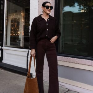 I ended up grabbing this blazer in black ( I have it in the green here) and I’m so tempted to get it in the dark brown. It’s my favorite fit of a blazer ever. I love it — it’s oversized without being too big. It fits over tees without feeling bulky, as well. I wear the medium, fit is oversized! It’s under $100, as well.