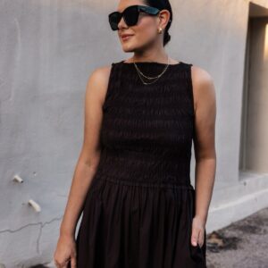 You’ve seen this a few days ago and that’s because I wore the same outfit twice. When it works, it works. I love this dress! It fits so well and is so flattering. I don’t love a sleeveless always, but this one I feel comfortable in. Also sorry I haven’t shown too many ways to wear it, I just love the mix of black and brown with it. This dress does run generously! Size down if in between sizes.