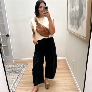 This outfit proves why I like taking selfies of my outfit — because I didn’t realize it until after I took this photo that I wish I would have done a nude purse with this look. I’m sure I’ll repeat this outfit again and when I do, a nude tote will be added. I was thinking the black would make it more grounded, but instead it just looks a little off to me. All that to say, I know I post selfies iad nauseam and that it’s my job at this point, but I honestly take them for myself as well. There is something about a selfie vs a mirror that helps me really examine an outfit.