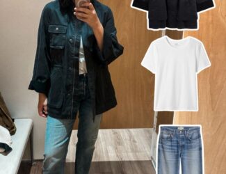 I’m in the medium as it runs generous! I love their cotton sweaters, the fit and weight are perfect and they don’t stretch out. Find it on sale under $45 here.