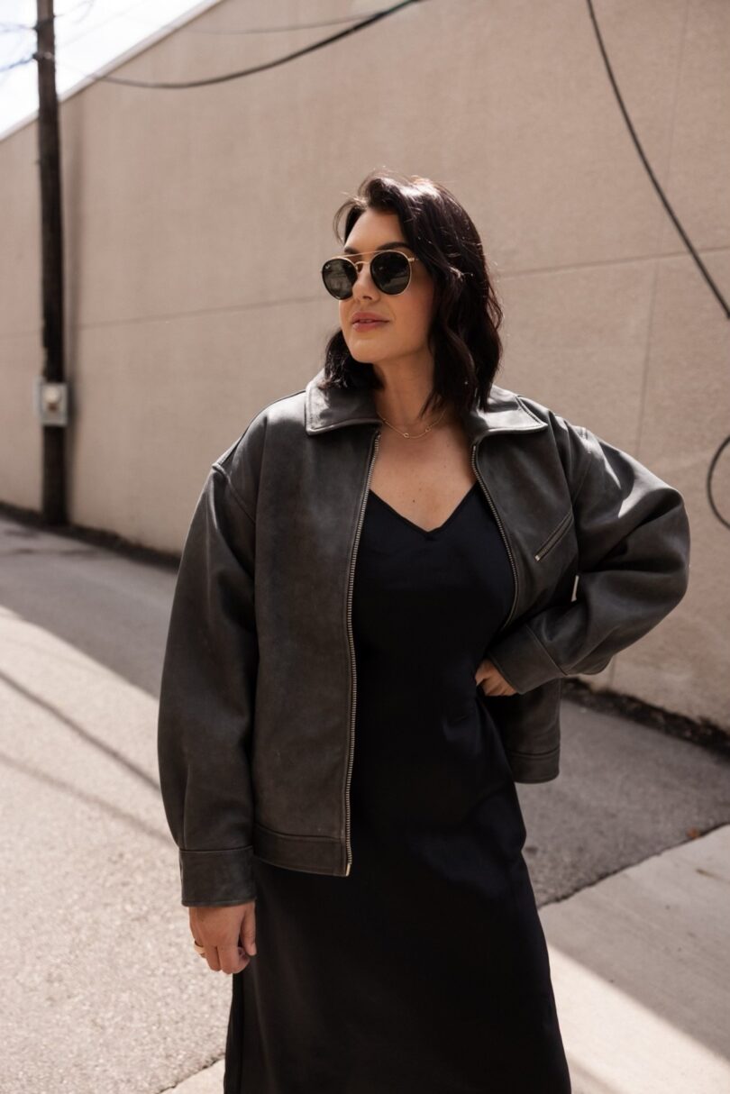I’m in the medium and it runs oversized! This is the distressed leather but I think I’d go brown or black in this one if I had to do it again! Find it here for $50 off.