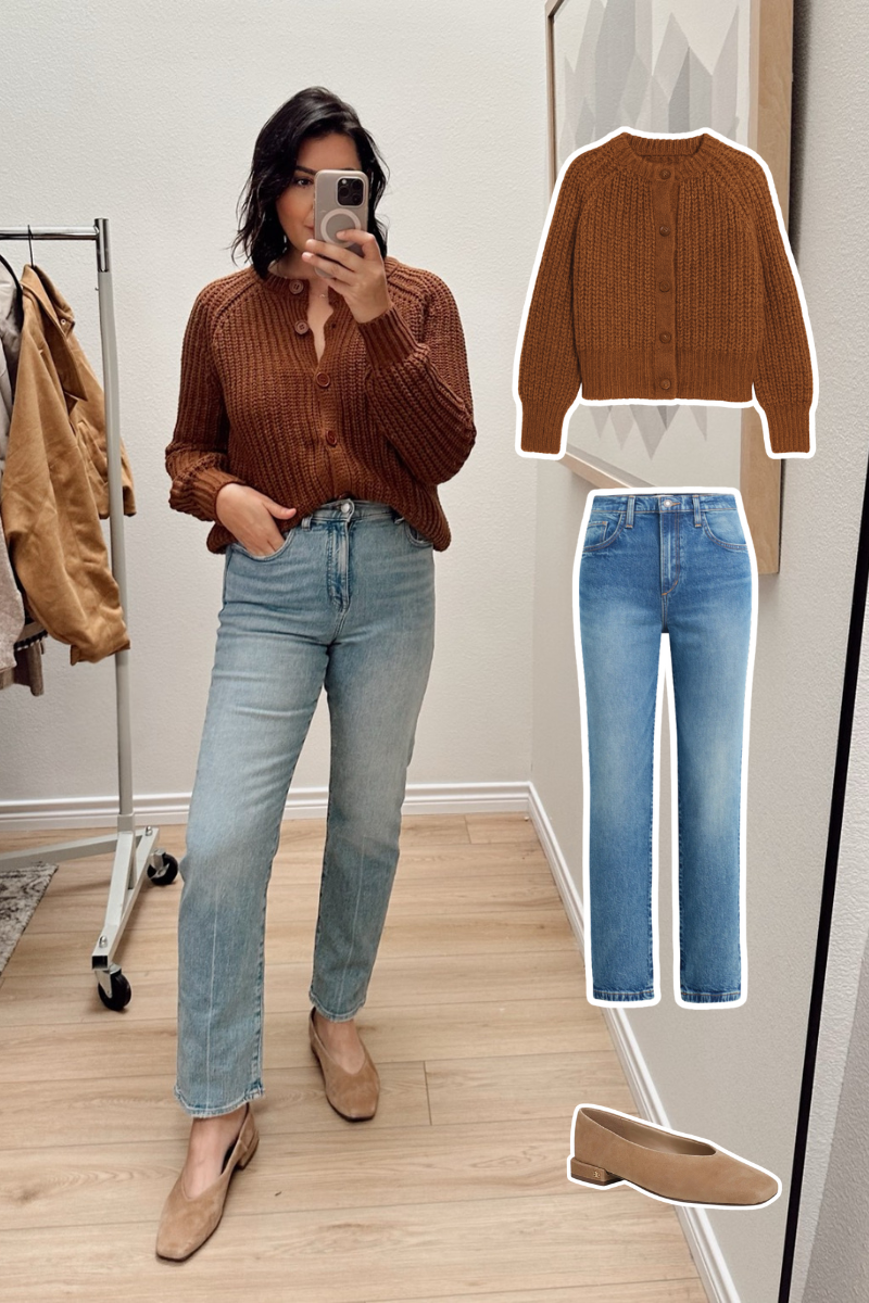 I’ve found a few Sezane dupes this fall (find my Old Navy one here!) and this is one to add to the list. This one is more fitted than the Old Navy one, for comparison. I find it runs a bit small / snug especially at the arms. I am in the large, so size up if you want a looser fit but this one is a closer fit in general. This brown is a more reddish / vibrant hue than shown in the listing. It’s a chunky knit, regular length and non-itchy, as well!