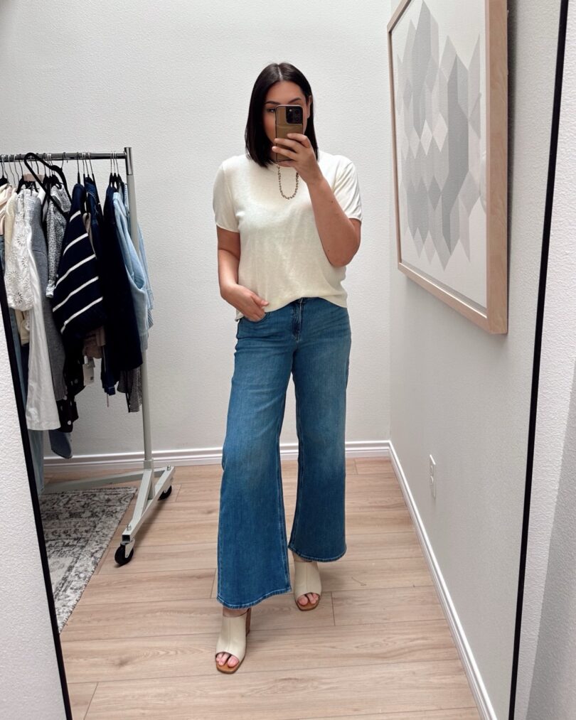 I want to put you on to these jeans! This is the Luna Wide Leg Jean. It’s a bit different than the Bella (which I’ve shared before!) This one has a more relaxed hip than the Bella and it’s a touch longer than the Bella Wide Leg. This one feels a bit more vintage than Bella. I love this mid-blue too! Very easy to wear this spring!