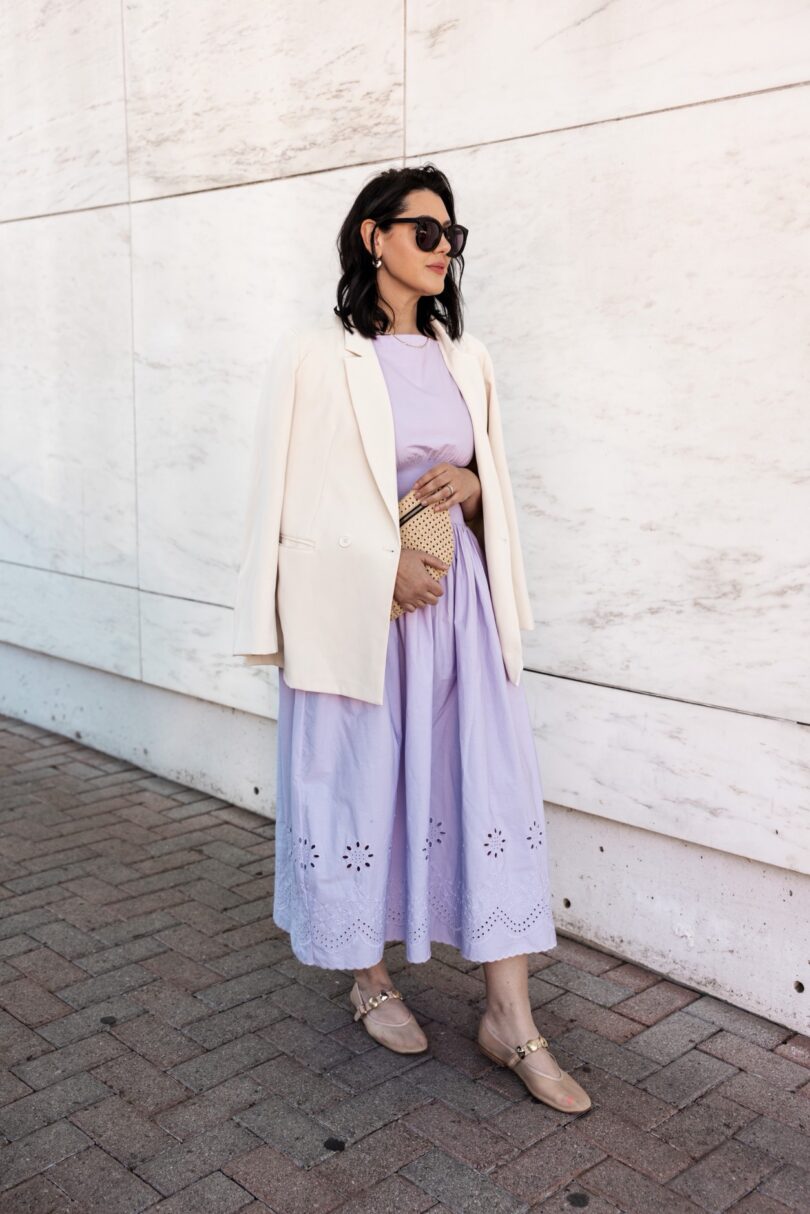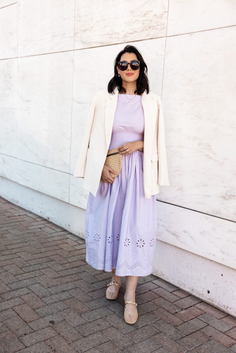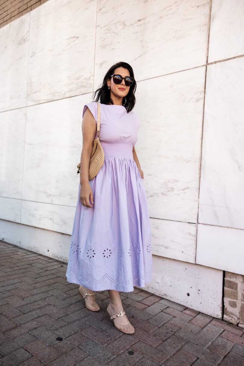 This dress is an unexpected like for me. I’ve been trying to add color this spring but I’ve been uninspired and everything I try I end up just knowing I won’t wear it again. In fact, this dress seems a bit twee for me between the color and the eyelet, but I’ve loved wearing it. I’m in the medium and it’s fitted at the chest for me but overall true to size.