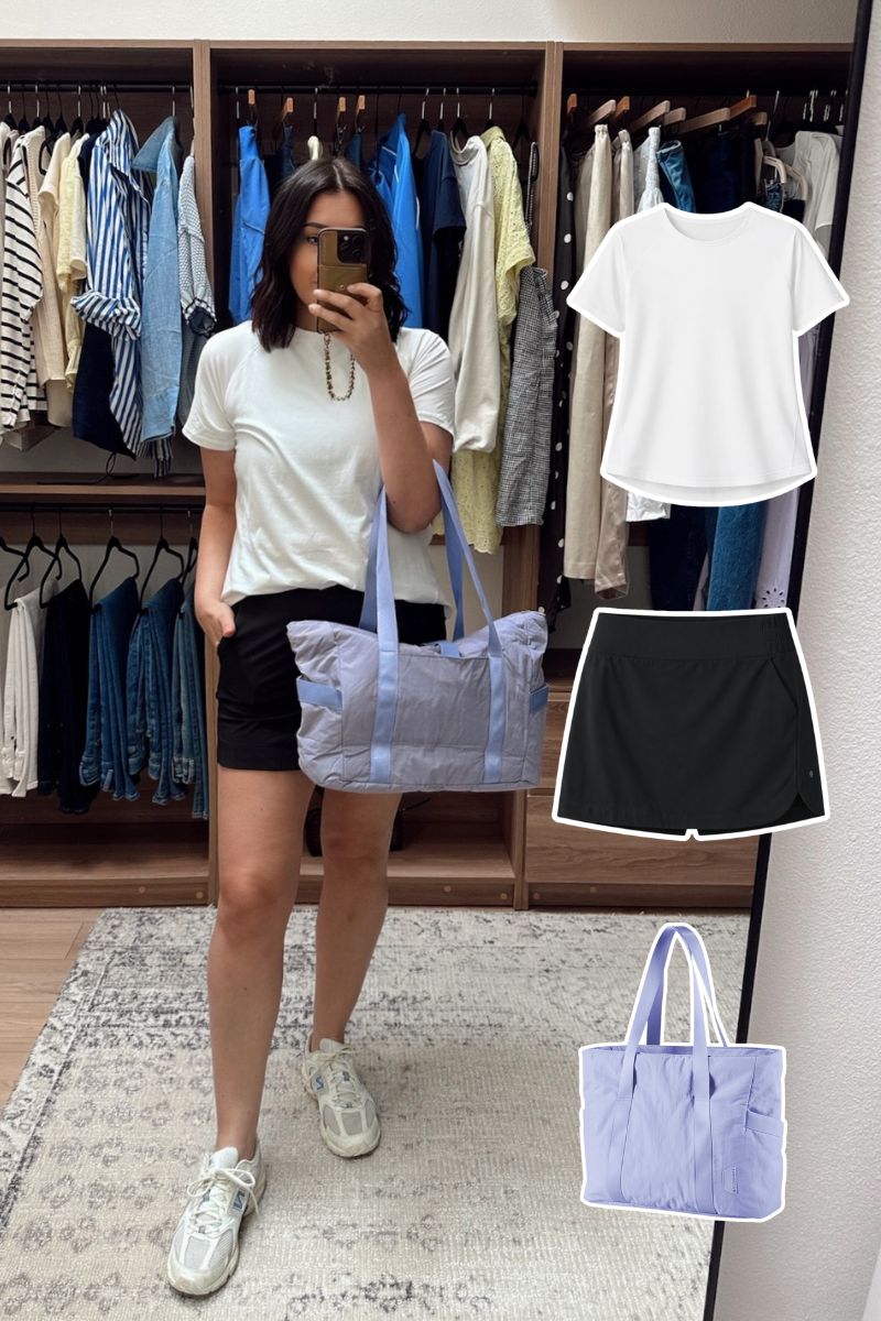Jacket | Skort | Tee | Sneakers | Tote