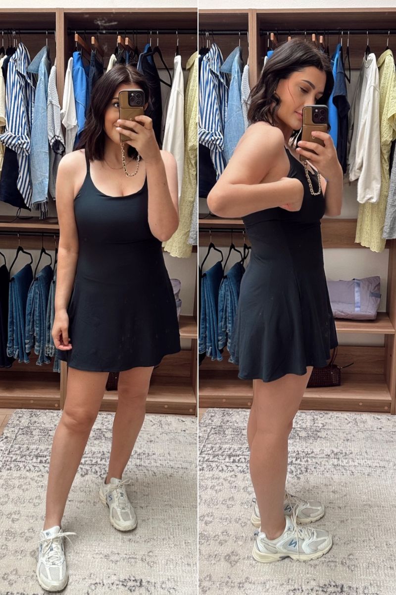 I’m so impressed with this dress! It has a built in sports bra that has removable pads and it actually holds me in! I wouldn’t run in it but I would play pickleball! It’s also very good for a sports game, as a spectator that is. It has a liner biker short as well, which is so nice. This is a great dress for summer too, because it’s a one and done situation.